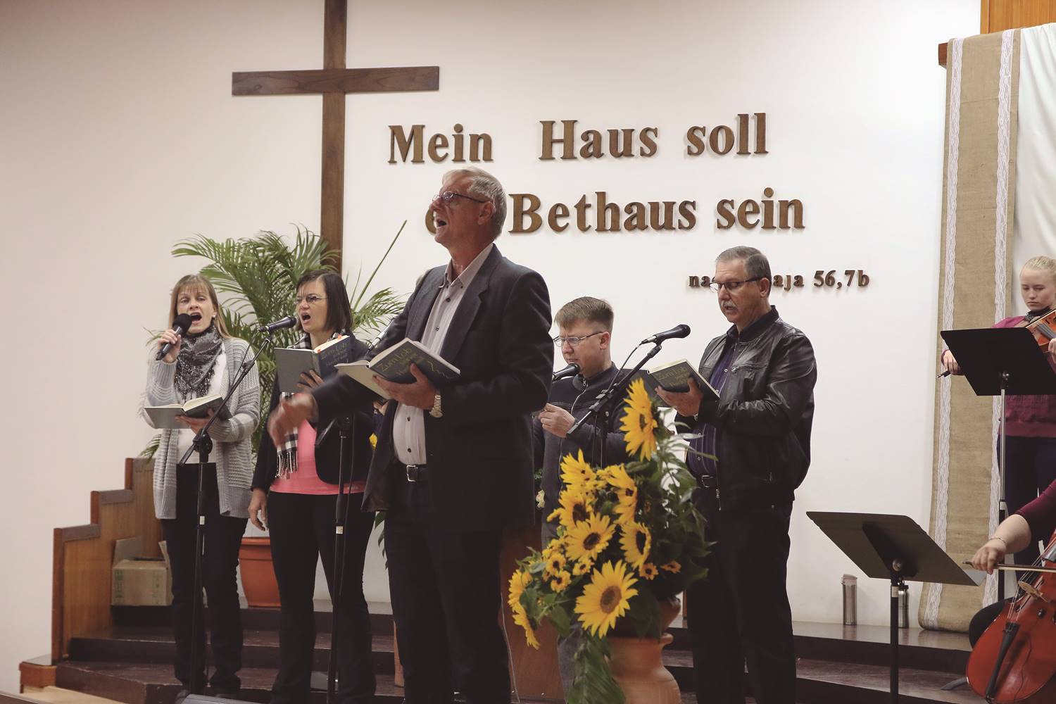 Am 4. und 5. August feierte die MBG Neuland das 70-jährige Bestehen der Gemeinde. Am Samstag, den 4. August waren nicht nur die Gemeindefamilie, sondern auch Freunde, Verwandte und ehemalige Gemeindeglieder eingeladen. Ab 17:00 Uhr gab es eine Fotoausstellung und eine PowerPoint Präsentation mit Bildern aus dem Gemeindeleben der letzten 70 Jahre. Schon früh kamen besonders die älteren Gemeindeglieder, um sich über die Fotos auszutauschen, die viele Erinnerungen weckten. Um 18:00 Uhr gab es dann ein kurzes Programm in der Kirche, welches aus Beiträgen von den Sonntagschülern, der Ranger Arbeit, einem kurzen historischen Rückblick und einer Gesprächsrunde bestand. Bei der Gesprächsrunde wurden 6 Personen verschiedener Altersstufen (7 – 85 Jahre) befragt, was ihnen die Gemeinde bedeutete. Dabei merkte man, dass die Gemeinde ein starkes Zusammengehörigkeitsgefühl entwickelt hat und durch die Höhen und Tiefen der Geschichte zusammengeschweißt wurde. So ist es heute eine junge Gemeinde, mit einer intensiven Kinderarbeit, wo viel Engagement gefordert ist. (Im Moment sind es 68 Kinder im Alter zwischen 0 und 6 Jahren) Nach dem Programm waren alle in den Speisesaal eingeladen, um gemeinsam zu essen. In gemütlicher Runde wurde weiter über die Bilder und die Erlebnisse diskutiert und es herrschte eine frohe Stimmung.